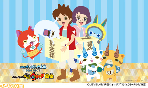 レベルファイブの妖怪ウォッチ製作委員会は、“ニッポンげんき応援PROJECT~みんなの妖怪ウォッチ募金~”を開設したことを発表した。