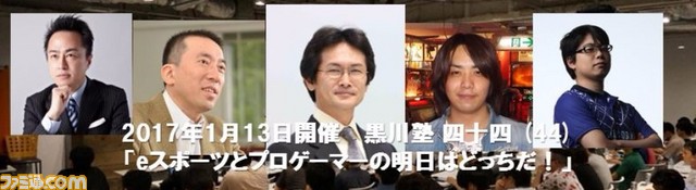 黒川文雄氏によるセッション“黒川塾”第四十四回が、2017年1月13日(金)より開催されることが決定した。テーマは“eスポーツとプロゲーマーの明日はどっちだ!?”。