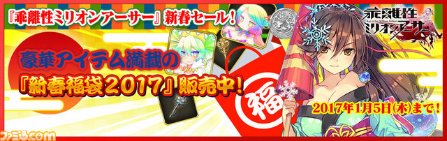 スクウェア・エニックスは、プレイステーション4、プレイステーション Vita用ソフト『乖離性ミリオンアーサー』について、本日2016年12月26日より“年末最終スペシャルクエスト”と“新春福袋キャンペーン”を開始した。