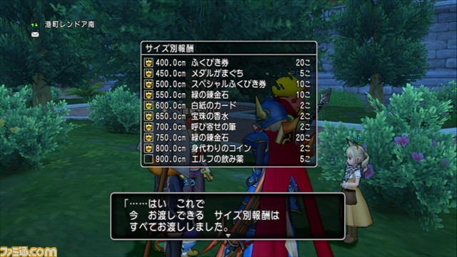 さっそくナツリに報告し、サイズを記録してもらいます。「ランキングはどんなもんなんだろう?」と見てみると、ギリギリの入賞ラインである200位ですら1400cm超え……。とりあえず900cmの報酬をもらえるところまでがんばろうかな……(笑)。
