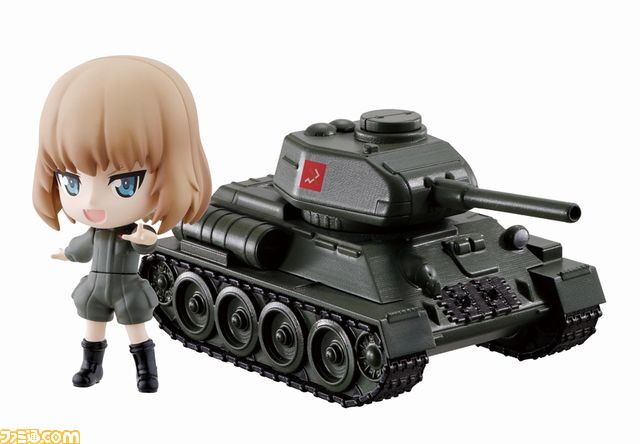 プラウダ高校の隊長「カチューシャ」のと、T-34/85のフィギュアのセットです。戦車にキャラクターを乗せて飾ることもできます。