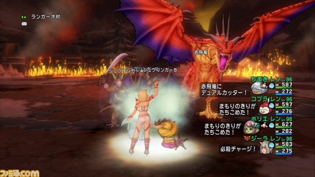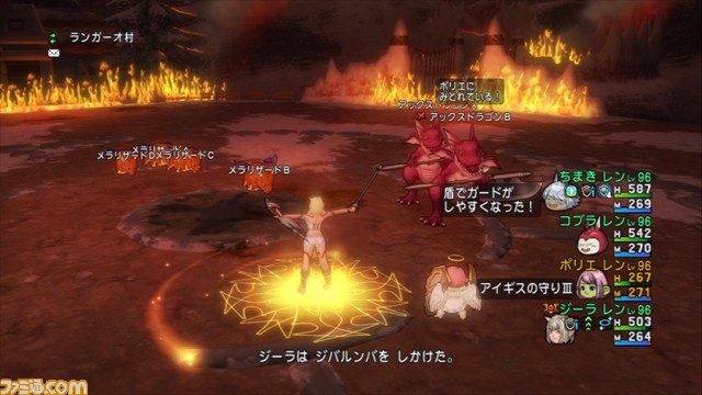 飛竜を含めた多数のモンスターが、つぎつぎに出現してくるタイプの戦闘。多くのモンスターがブレス攻撃を行ってくるので、“まもりのきり”はつねにかかっている状態を維持しないと、一気に崩される危険もあります。また、多数のモンスターが出現するので、ジバルンバも大活躍! ジバルンバは詠唱速度が非常に短いので、詠唱速度を上げていなくても使いやすいのが特徴です。
