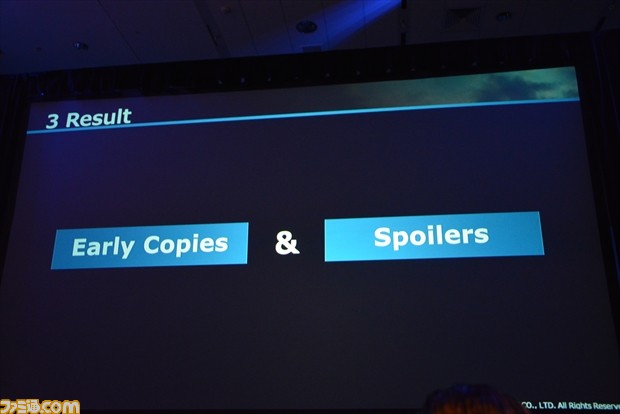 「フラゲしても個人で楽しむぶんには大きな問題ではないかもしれない」とする田畑氏だが、問題となるのは、ソフトの発売を楽しみにしている人たちに対して悪意を感じるようなネタバレの拡散行為だ。『FFXV』チームのもとには、多くのファンから、そうしたネタバレ行為に関する苦情の声が寄せられたという。関係者と話し合った田畑氏は、ネタバレを見たくないユーザーに対して注意喚起をし、悪質なネタバレ行為に対しては強い態度で臨む意思表示を行った。これによって悪質なネタバレ行為はだいぶ沈静化したが、「その反面、代償として僕個人に対する批判や、ゲームに対する批判が過熱して、プロモーションに悪影響を及ぼしてしまいました」と当時の状況を説明していた。