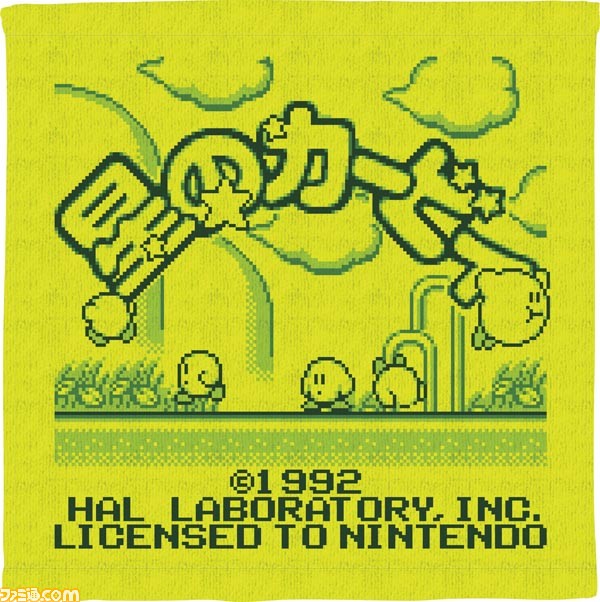 ゲームボーイ『星のカービィ』のタイトル画面をはじめ、カービィの世界観をデザインしたタオルです。