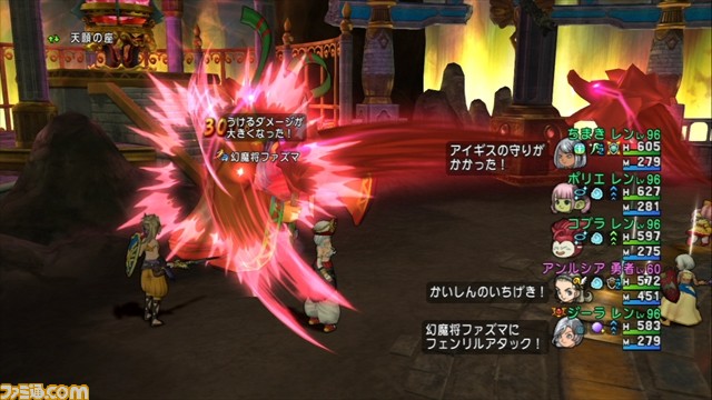 幻魔将ファズマは、幻影を呼び出して、本体を見つけないとダメージを与えられないボスですが、アンルシアが“勇者の眼”を使えば、幻影をすべて消し去ってくれます。一斉にバタバタと倒れる幻影。ちょっと見た目がおもしろい(笑)。