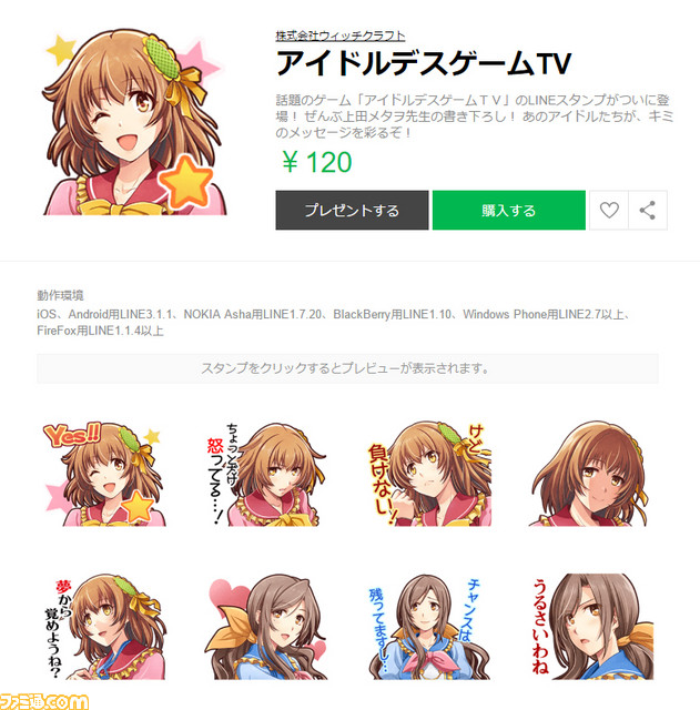 ディースリー・パブリッシャーは、発売中のプレイステーション Vita用ソフト『アイドルデスゲームTV』のLINEスタンプを配信開始した。1セット40種で、価格は120円[税込]または50コイン。