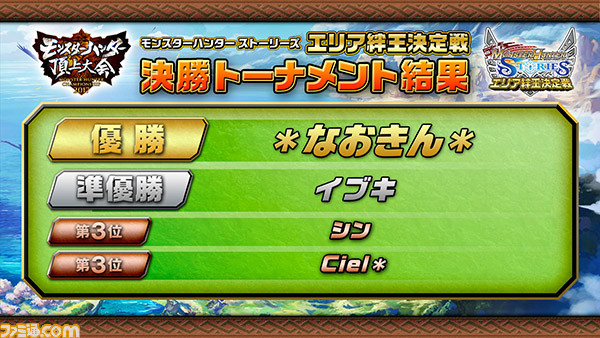 大会の結果は「モンスターハンター頂上大会2017」公式サイトへ