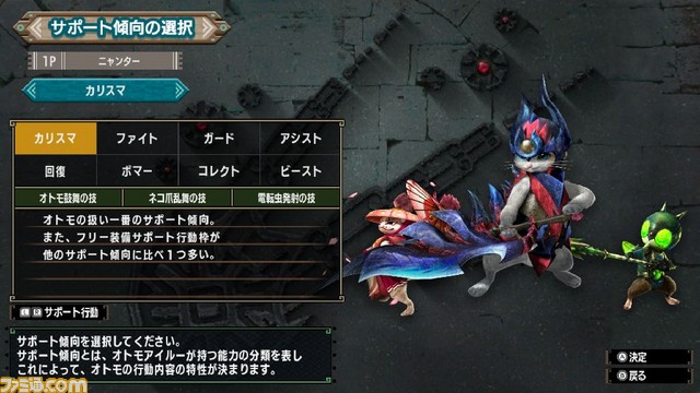 そして狩技は、方向ボタンの上、右、下で選ぶ仕様になっていた(今回はブレイヴスタイルなので上のみ。セットされていた狩技は“獣宿し【獅子】”)。こちらは左手で操作することになるため、移動しながら発動したい場合は、たとえば左人差し指でLスティック、左親指で方向ボタンといった、いわゆる“モンハン持ち”っぽくするなど、持ちかたを工夫したほうがいいかもしれない。また、操作方法は複数のタイプから選択できるので、ボタン同時押しで狩技が発動するように設定するのもアリだろう。ちなみにこの後レンキンスタイルでもプレイしたのだが、個人的に方向ボタンの上が咄嗟に押しやすかった。製品版で絶対回避を使う場合は、いちばん上にセットしたい。
