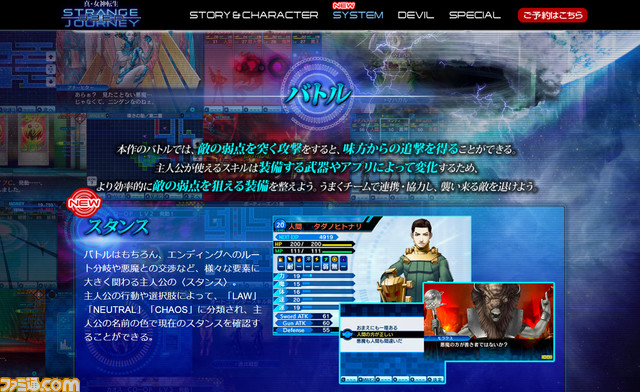 本日、10月26日発売予定3DS用RPG『真・女神転生DEEP STRANGE JOURNEY』の公式サイトを更新いたしました。SYSTEMページを公開!本作のバトルの特徴をご紹介中です。戦況を大きく左右する「スタンス」「デビルCO-OP」に加え、本作より新たに追加された「コマンダースキル」は必見です!ぜひSYSTEMページよりご覧ください。