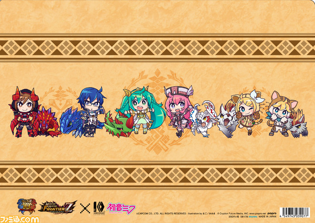 さらに、「マジカルミライ 2016」オフィシャルミュージックビデオ「39みゅーじっく」のイラストでもおなじみ、 まごさんによる全キャラ描き下ろしコラボデフォルメイラストを使用したアクリルキーホルダーも発売決定! イラスト内のちびモンスターは『モンスターハンター フロンティア』のキャラクターデザインを担当するみみまの 全面協力という作品ファン必見の商品となります!