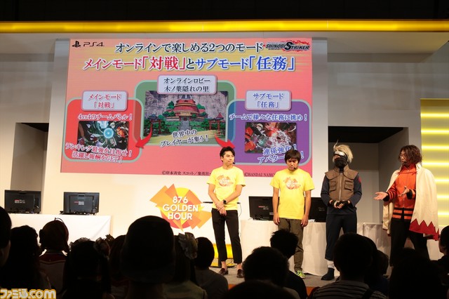 ふたつ目に紹介されたタイトルは、プレイステーション4用ソフト『NARUTO TO BORUTO シノビストライカー』。こちらもプロデューサーの新野範聰氏が、“七代目火影”となって登壇し、ゲーム内容をみずから説明した。