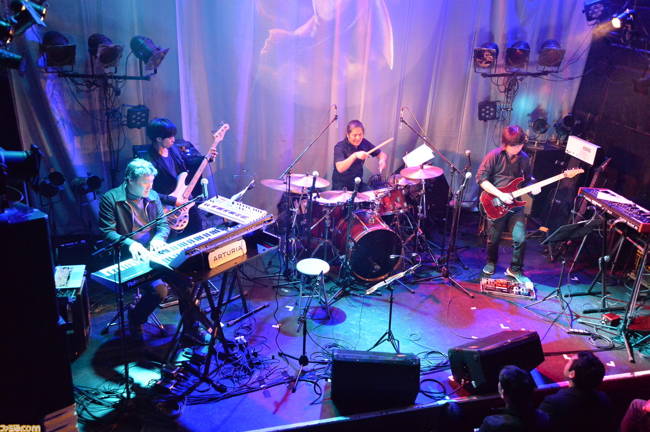 続いて演奏された3曲は、初公開となる楽曲を含む『メタルマックス Xeno』の新曲。ジャジーでスローバラードなヒロインのテーマ曲“Toni”、チェロを加えた物悲しい音色が印象的なフィールド曲“Feild”、変拍子とツーバスでハードな仕上がりのバトル曲“鋼の咆哮”と、いずれも『メタルマックス』の新生を彩るに相応しいヘヴィな仕上がり。ゲームよりひと足先に聴くことができたファンは、一様に満足げな表情をしていた