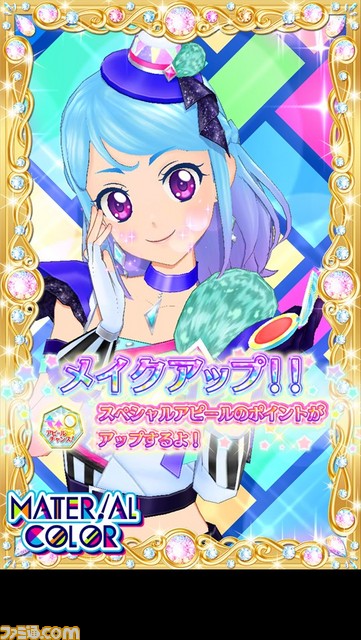 新要素であるコスメが描かれた「アクセサリーカード」です。メイクアップの特別な演出やスペシャルアピール、コンボのポイントが上がる効果があります。
