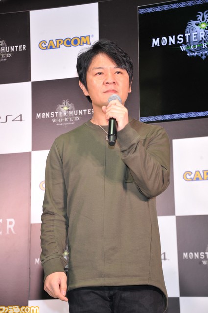 トークは和やかに進み、いよいよ発売開始までのカウントダウンを行う時間に。ここで、アメリカのサンフランシスコに滞在中の『モンスターハンター:ワールド』エグゼクティブ・ディレクター/アートディレクター藤岡要氏とのテレビ電話がつながり、藤岡氏もカウントダウンに参加。午前7時を迎え、「『モンスターハンター:ワールド』で、ひと狩り行こうぜ!」という掛け声とともに、ついに販売開始となった。