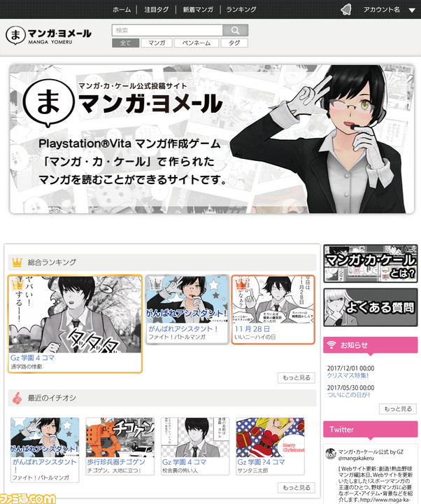 PlayStation Vita 、PlayStation4用ソフト「マンガ・カ・ケール」で作られたマンガを読むことができるサイトです。