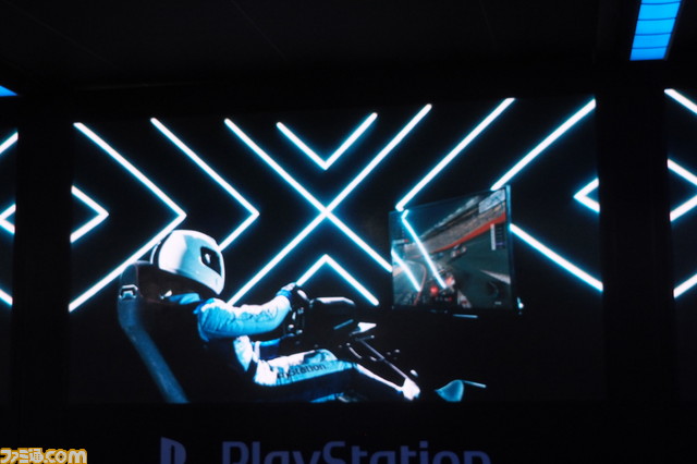 まずはスクリーンに、今回のブースを彩る出展タイトルがつぎつぎと映し出されていき、ファンの期待を煽る。すると映像の最後に『グランツーリスモSPROT』をプレイするドライバーの姿が。そしてその人物がヘルメットを脱ぐと、なんとSIE台湾の総経理(代表)江口達雄氏であったことが明らかに。趣向を凝らしたコスプレが台北ゲームショウ恒例となっている江口氏だが、今回はヘルメット片手のドライバースーツ姿でステージに姿を見せ、来場者からは大きな拍手が贈られた。