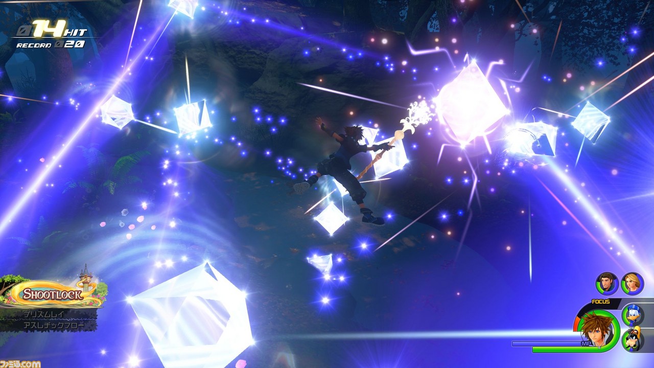 本作ではキーブレードが多彩に変形し、さまざまな攻撃方法がくり出せる。また、この世界ではフォームチェンジの代わりに、ソラの体の色が変化。