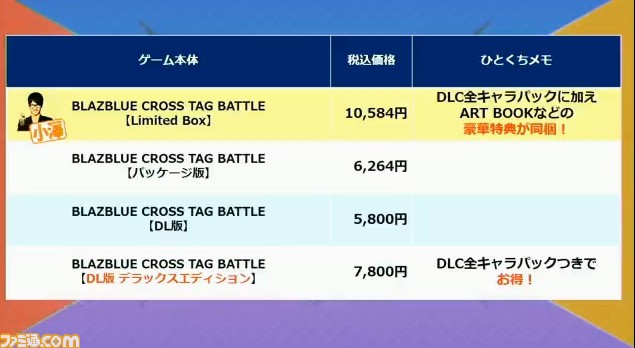 『ブレイブルー』シリーズより“プラチナ=ザ=トリニティ”、『ペルソナ4 ジ・アルティメット イン マヨナカアリーナ』より“巽完二”、『アンダーナイト インヴァース』より“オリエ”の参戦が決定したほか、限定版などの価格も発表に。