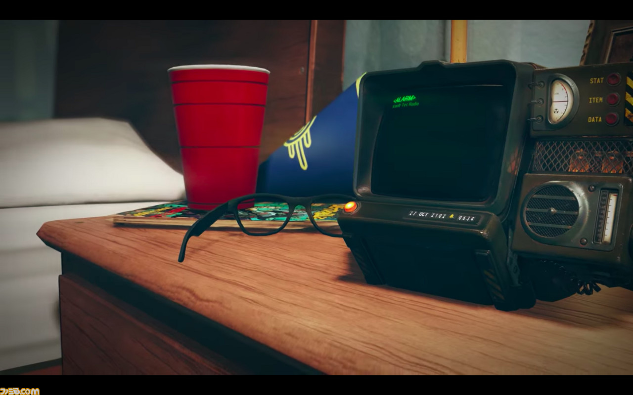 トレーラーでは、往年の名曲『カントリーロード』をバックに、気になるシーンが多数。“1776-2076”といった年号と思われる数字が書かれたポスター、“You are invited(あなたは招待されました)”と表示されたPC、“Vault 76から未来が始まる”というセリフ、見たことのないPip-Boyを装着する場面など、いろいろと想起させるキーワードが登場している。ちなみに、“Vault 76”と言えば、『フォールアウト3』や『フォールアウト4』で名称だけ出ていたもの。Vault 76を起点にゲームが始まるのだろうか?