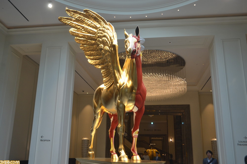 むかし沖縄の民宿に泊まったとき、そこで飼ってるワンちゃんが玄関で出迎えてくれてほっこりしたんですが、パラダイスシティの入口で待ってるのは召喚獣みたいな筋肉むき出しのペガサス。高級リゾートらしい非日常感を存分に味わえるはずです。