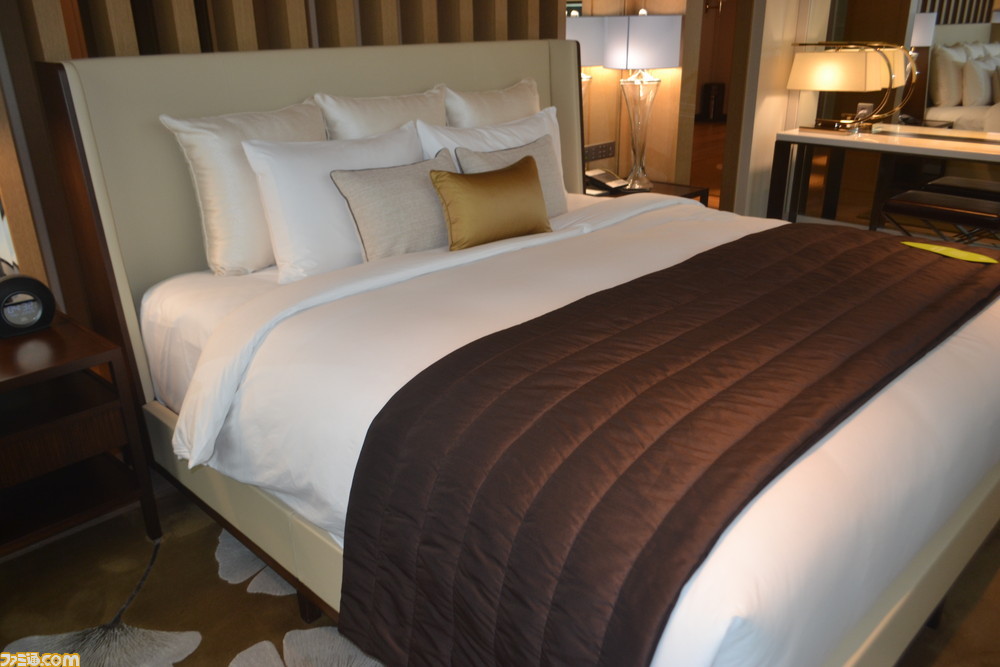 ふっかふかのベッドに純白のグランドピアノ、見るからに高そうな美術品の数々。もう、完全に別世界でした。この部屋に泊まる人の生活が想像できない。