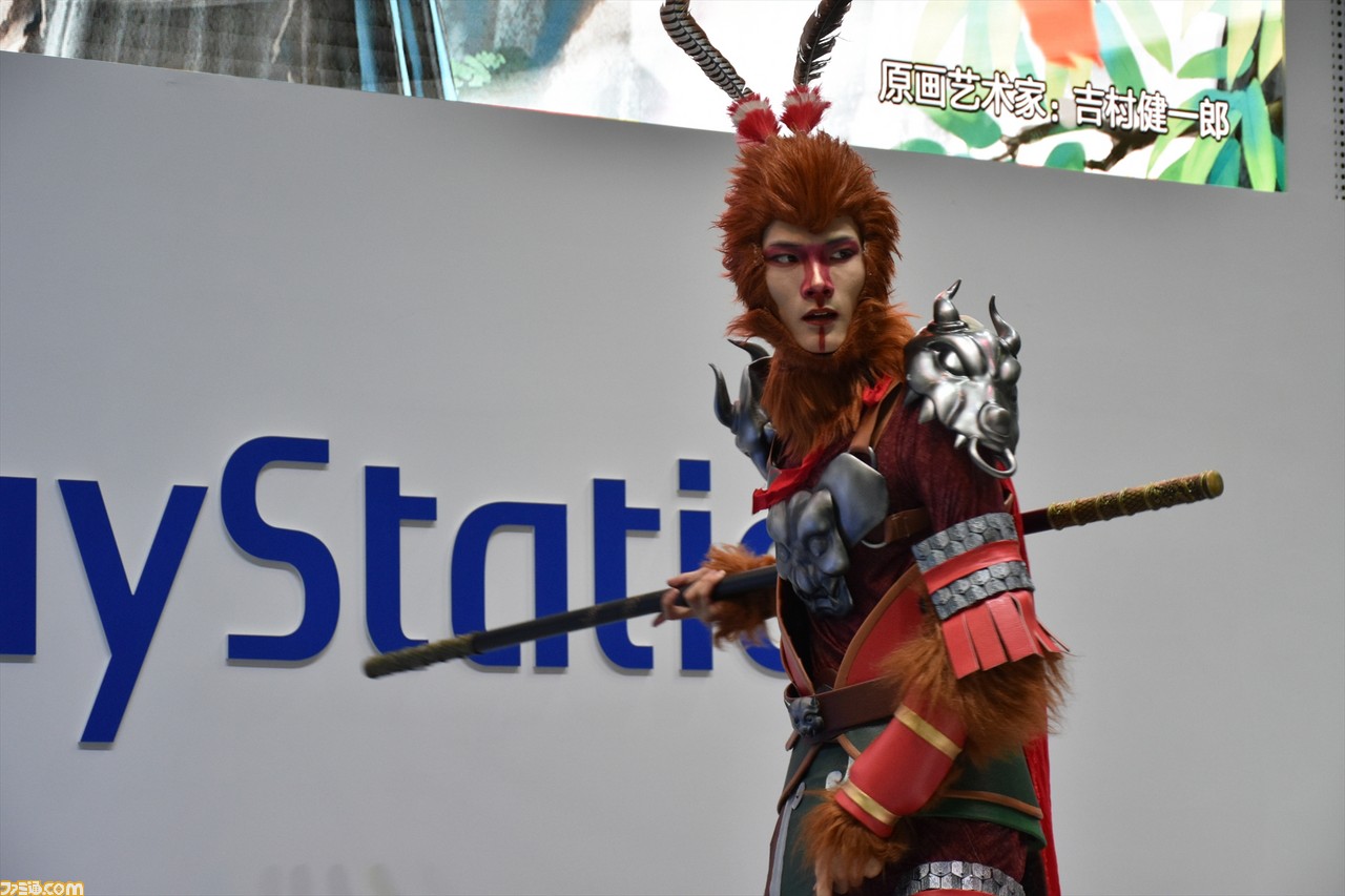 SIE上海ブースでは、例年通りステージイベントを実施。オープニングセレモニーでは、ソニー・インタラクティブエンタテインメント シニアバイスプレジデント 兼 日本ビジネスオペレーション部門 部門長 織田博之氏とソニー・インタラクティブエンタテインメント上海 プレジデントの添田武人氏が顔を揃えたほか、『Monkey King Hero is Back』の主人公・大聖(アジアでは孫悟空はこう呼ばれいているようです)も登場。大見得を切って来場者から拍手を浴びた。
