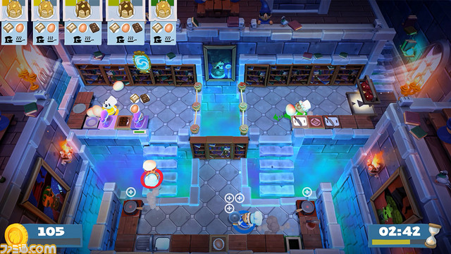 新しいレシピは、ケーキにパスタ、ピザに…寿司!? 魔法学校や鉱山、エイリアンの惑星など、包丁片手にどこでもクッキング! 瞬間移動したり食材を投げあったり、時短料理の新要素も追加されちゃった! キッチンステージもよりハチャメチャでカオスに!