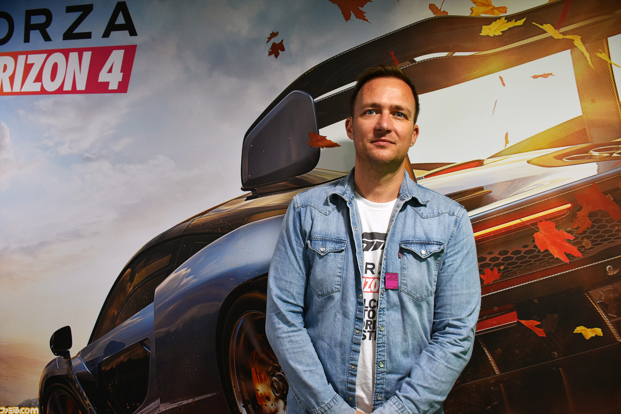 『Forza Horizon 4』の大きな特徴といえば、何といってもダイナミックな季節の移ろい。「夏は、太陽が高く気温も高いので、地面は固く焼かれています。秋は湿度が高くなり、カラーパレットがグリーンからオレンジ、レッドに変わっています。川の水量が増え、泥が厚く脆くなる。湿度がタイヤやサスペンションに負担をかけますし、ドライビングにも影響します。冬は雪が深くなり、走行に抵抗があるので、どのレーンを走るかを考える必要があります。南に行くと雪の代わりに霜、氷に対応しなければなりません。春は木々が芽吹き、花が咲きます。雨が多く深い水溜りもできるので、ドライビングの方法や選択するクルマにも考慮が必要ですね」と、フルトン氏が特徴を語るその口調は、さながら季節の移り行きを語る英国の詩人のよう。