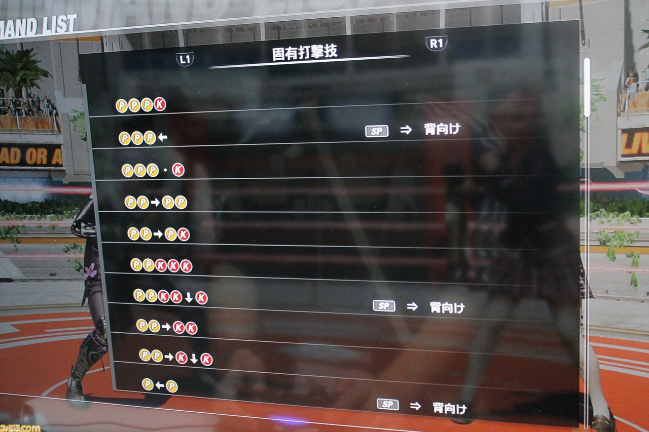 今回のバージョンで遊べるようになった4人のキャラクターの技表を、一部だけ公開(固有技、投げ技、ホールド技のみ。あやねのみ背向け技、ほのかのみ特殊構えも掲載)。こちらは新堀プロデューサーいわく、まだまだ調整が入るとのことなので、現状はどんな技が使えるのか気になる人は、ぜひ見てみてください。なお、ほのかは空中投げなどが追加されており、あやねは“ディレイ入力”に対応した技が増え、よりテクニカルになっているようでした。