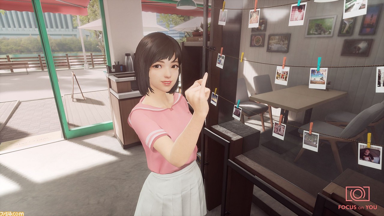 甘酸っぱい初恋のエピソードが展開していくなか、学校はもちろん、ヒロインの部屋、カフェ、公園など、いろいろな場所で、さまざまな表情やポーズのヒロインを撮影することができる。また、衣装は現在50種類以上準備され、DLCで追加されていく予定で、着せ替えが可能だ。