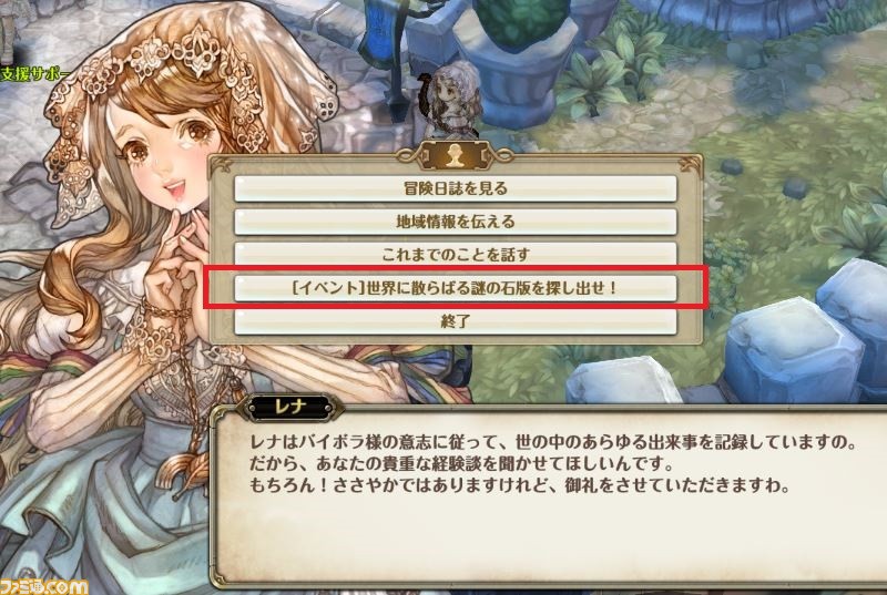 2.そのヒントを元に石版を見つけ出すと、レナからお礼のキューブがもらえます。