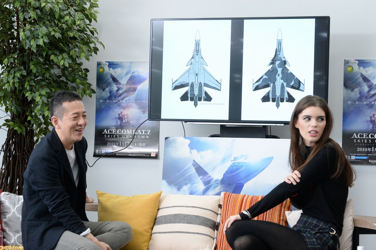 2019年1月17日、プレイステーション4版とXbox One版が発売を迎えた(PC版は2019年2月1日発売予定)、バンダイナムコエンターテインメントのフライトシューティング最新作『エースコンバット7 スカイズ・アンノウン』(以下、『ACE7』)。その前日となる2019年1月16日、バンダイナムコエンターテインメントの社屋をとある人物が訪問した。その人物とは、フランス人のモデル、Ombeline Le-Mire Cahnさん。世界的なモデルとゲームメーカーにどんなつながりが? と、不思議に思う方も多そうだが、じつは彼女は大の『エースコンバット』シリーズファン。『ACE7』の発表以来、facebookでファンアートを投稿し続け、発売イベントに参加したくて来日にいたったのだそうだ。そんなOmbelineさんと、『ACE』シリーズのブランドディレクター・河野一聡氏との対談の模様をお届けする。