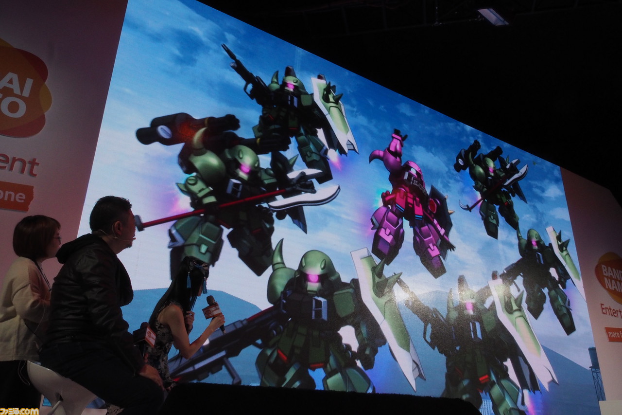 そして参戦作品一覧がスクリーンに映し出されると、ゲストのふたりは「めちゃくちゃありますね!」と興奮した様子。その後の説明を引き継いた宮城氏は、「それぞれの『ガンダム』の世界観、テーマ性を、戦闘だけではなく、キャラクターが泣いたり笑ったりするドラマチックな部分も味わいながら、『ジージェネ』らしい開発を楽しんでもらえます」と、本作の魅力を説明した。