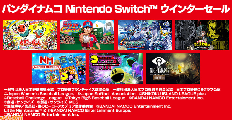 バンダイナムコエンターテインメントは、『太鼓の達人』や『ファミスタ』などNintendo Switch用ソフト7タイトルが最大40%OFFになる“バンダイナムコ Nintendo Switch ウインターセール”を実施中。