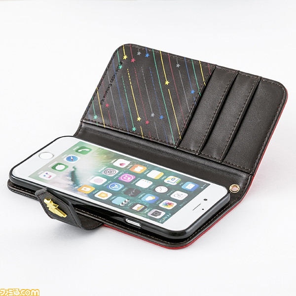 スマートフォンケースの内装は、流れ星をイメージしたメンバーカラーのストライプ柄になっています。