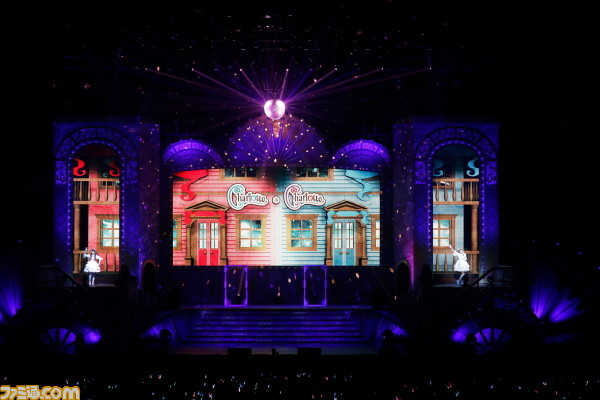 続く“Charlotte・Charlotte(諏訪さん、郁原さん)”は、ドールケースをモチーフとしたセットとともに登場。同ユニットらしい演出に会場は大いに盛り上がるなか、『だってあなたはプリンセス』、そして『フタリの記憶』を歌唱。曲後のトークでは、諏訪さんが今回カバーした『フタリの記憶』について、自身もとても大好きな曲ゆえ、今回ユニットとして同曲を歌唱できて嬉しかったと語った。その後、『魔法をかけて!』、『ミラージュ・ミラー』を披露し、同ユニットが持つかわいさで会場を甘く包み込んだ。