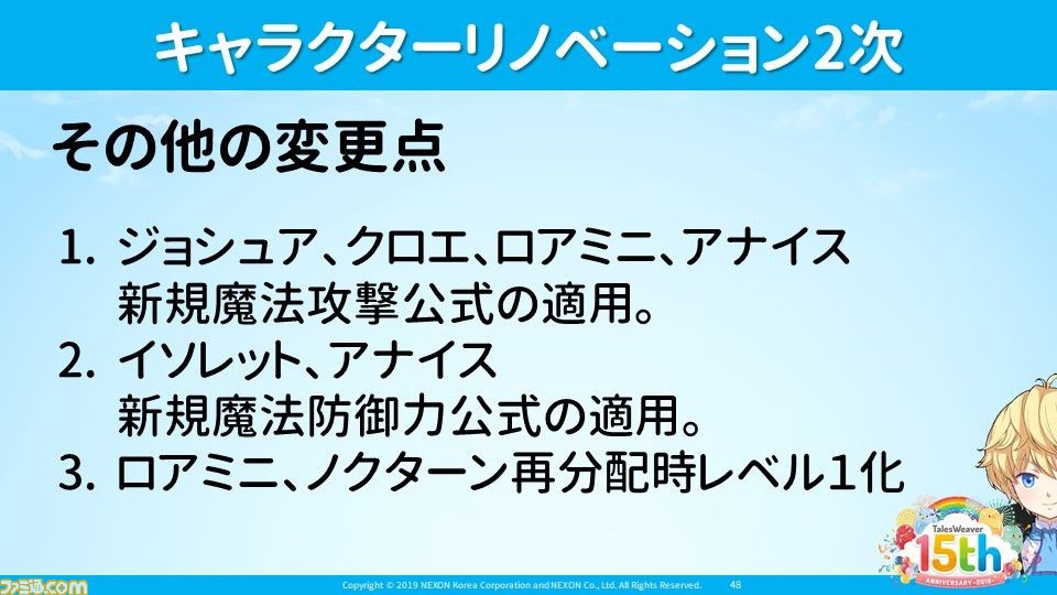 対象キャラクター以外の変更点として、魔法攻撃力・魔法防御力の公式適用キャラクターの拡充が挙げられた。