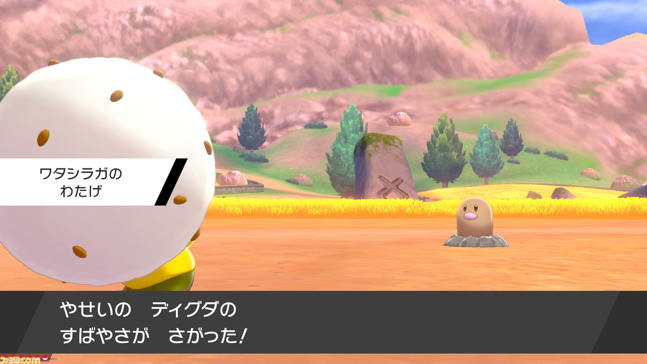 ポケモンはそれぞれ種類ごとにバトル中や、フィールド上などで効果を発揮する「特性」を持っている『ポケットモンスター ソード・シールド』には、新しい特性が登場する。ヒメンカとワタシラガの持つ特性【わたげ】も、そのひとつ。バトルで攻撃を受けた際に、ポケモンの素早さを下げるわたげをばらまく効果を持っている。