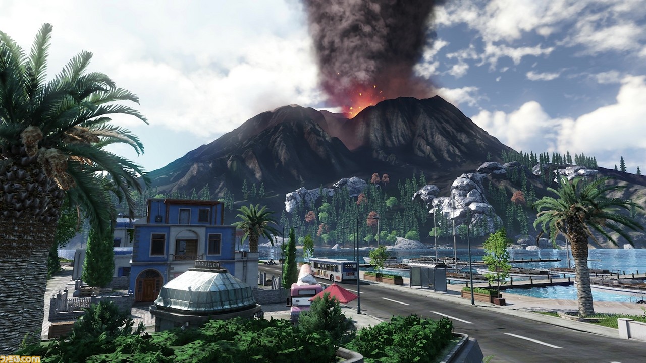 雪山に続く第2のステージとして今後実装されるのが、火山マップ“エウロパ”だ。そびえ立つ巨大な火山を中心として、そのふもとに街や集落が存在。火山灰が周囲に降り注ぐと視界が遮られ、一面暗黒の世界に……。これを利用し、身を潜めて敵を撃退するか、闇に紛れて逃げるか。これまでにない、想像を絶する戦いが待つエウロパから脱出できるだろうか。