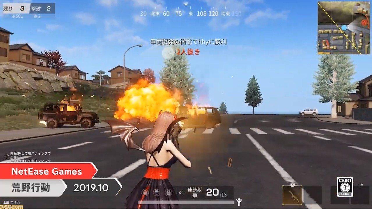100人のプレイヤーが戦い、生き残りを目指すバトルロイヤルゲーム『荒野行動』のNintendo Switch版が10月に配信決定。最大5人までのチームプレイやジャイロ操作にも対応。