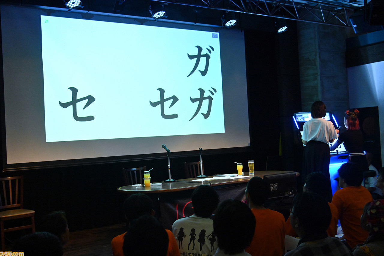 イベント第1部のコーナーは、“打倒みゅーちゃん! ゲーム対決”。ゲーム好きで知られる高木さんと対決して勝利すると、高木さんとのツーショットチェキが撮影できるというこの企画。これまでにツーショットチェキという企画は行ったことがないという高木さんだけに、非常に貴重な機会となる。プレイするゲームは、アーケードで人気の『タッピングスキルテスト』。画面に出た数字を順番にタップしたり、大量の“大”の中から“犬”を探すなどといった正確なタッチ操作を計測するテストに挑戦し、“タッピングスキル年齢”を測るゲームだ。ステージ上に筐体が用意され、まずは司会の十束さんがゲームに挑戦。さまざまなテストに苦戦しつつ、最終的にタッピングスキル年齢47歳という結果に終わった。続いて、前日に練習してきたという高木さんがゲームに挑戦。こちらはなんとタッピングスキル年齢24歳という、自身の年齢よりも+1歳となってしまったものの、非常に優秀な結果を残す。会場に集まったファンは、この高木さんのタッピングスキル年齢を超えなければならないという、なかなかのハードモードに挑戦することとなった。