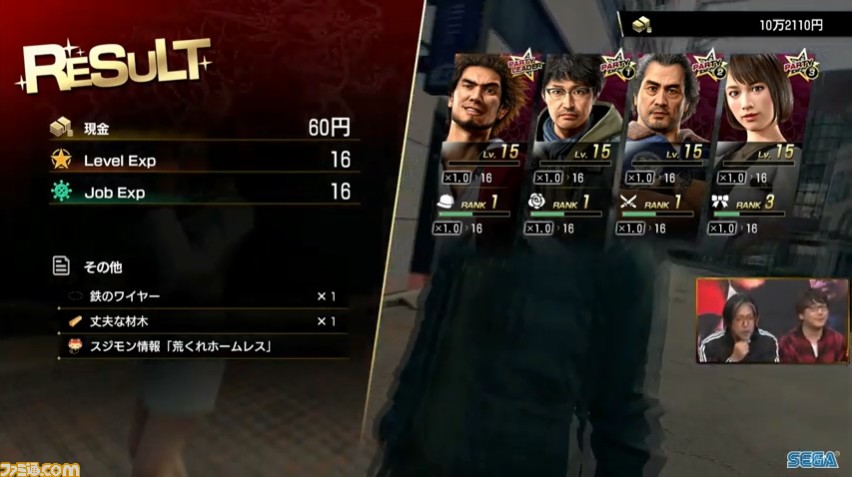 ちなみに、バトル後のRESULTには“スジモン情報「荒くれホームレス」”という項目が表示。横山氏によると、本作には“スジモン図鑑”というコレクター要素があり、この図鑑を埋める仕様があるとのこと。
