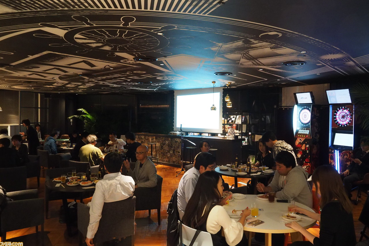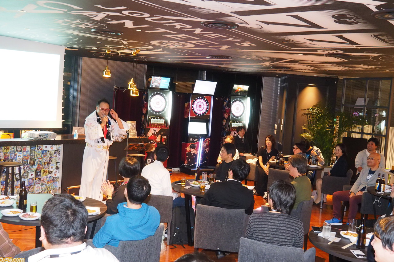 ディナーショーの会場となったのは、東京・大崎のセガグループの本社ビルにある社員食堂JOURNEY'S CANTEEN。その一角にあるバーエリアで、事前の応募より抽選で選ばれたグループ社員たち約40名がテーブルを囲み、光吉氏の登場を待つこととなった。