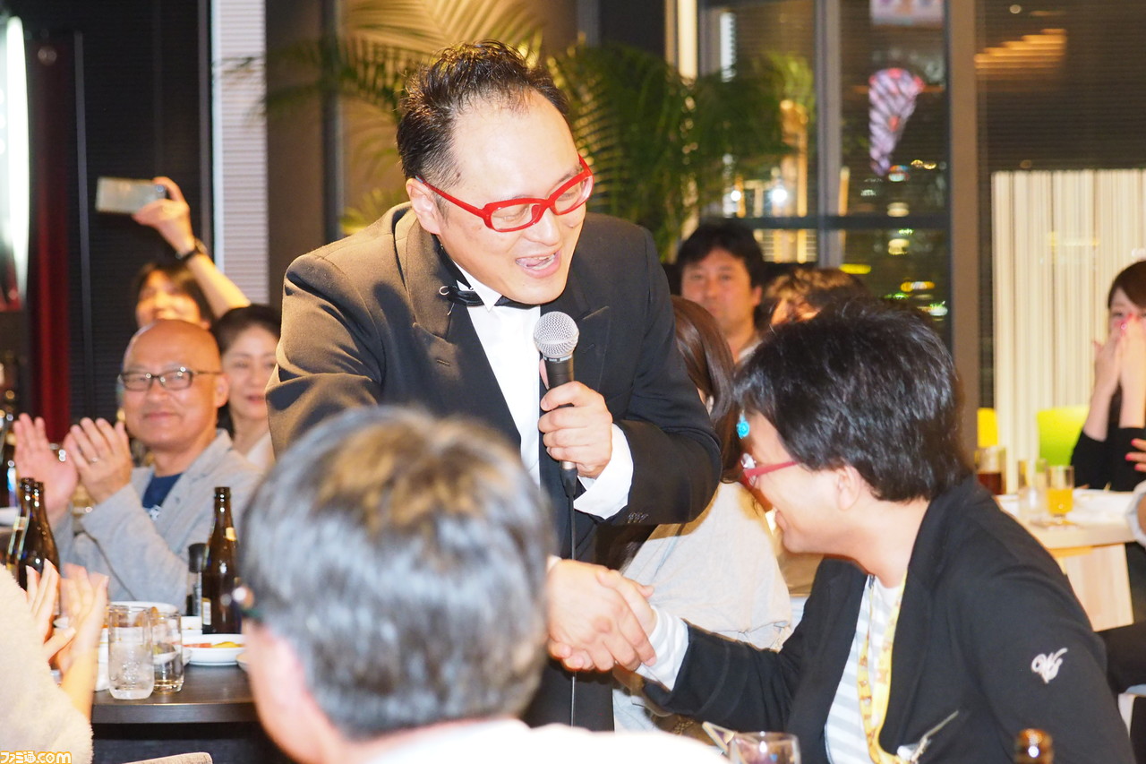 「これにてディナーショーは終了」という司会のひと言に、会場からは当然のように「ええーー!」という声が。それに応えるように流れ出したアンコール曲は、TVアニメ『バーチャファイター』の後期主題歌“愛がたりないぜ”。「一時期はJAEPOやAOUショーのエンディングを飾ったお疲れ様ソング」と光吉氏が選んだ曲だけにエンディングにはもってこいなのかもしれない。アウトロで光吉氏は「皆さん、月曜の夜からありがとうございました。明日もまた仕事です!」とマイク。“セガ社員による社員のための社員食堂でのディナーショー”という前代未聞の試みは、そんなことを忘れさせるほどの熱狂を残したまま終演となった。