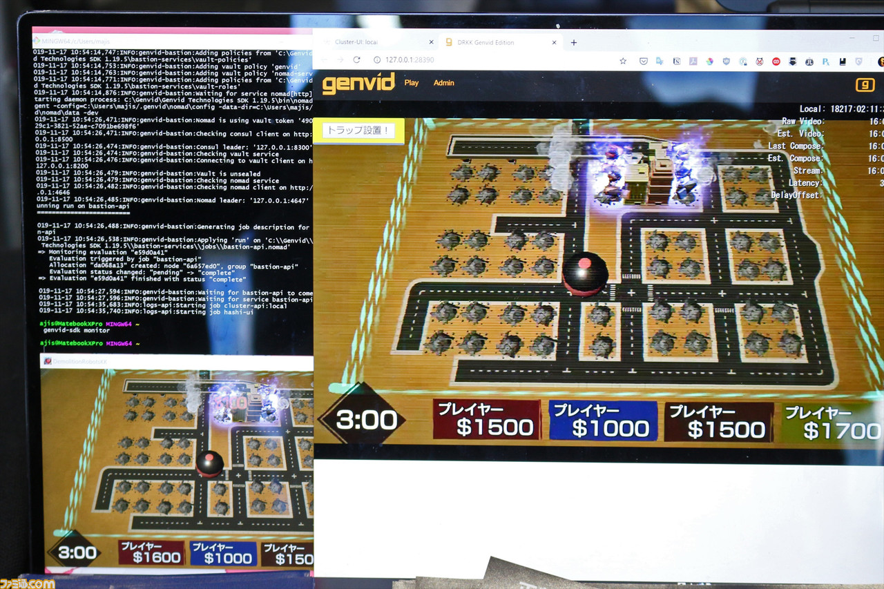 2019年9月に製品版がSteamでリリースされたゲームコンストラクションソフト『アクションゲームツクールMV』と、ウェブテクノロジが開発・提供する2Dアニメーション作成ソフト『OPTPiX SpriteStudio』の両ブースが、コラボ企画として“イベント開催時間内でのゲームのリアルタイム制作”を実施。『OPTPiX SpriteStudio』でアニメーション処理を施したグラフィック素材をUSBメモリ経由で受け渡し、『アクションゲームツクールMV』にコンバート……という突貫スタイルで行われた。アニメーション処理前のグラフィックは自事前に作成済みだったとはいえ、約4時間でボスキャラ戦あり、カットイン演出ありの2D格闘アクションゲームの大枠が無事完成し、両ソフトの柔軟性の高さがうかがえた。