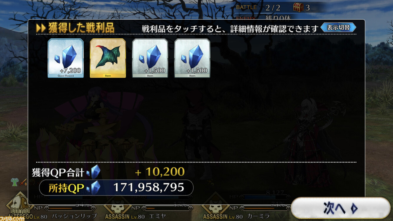- 敵の宝具ターン終了後に戦闘終了