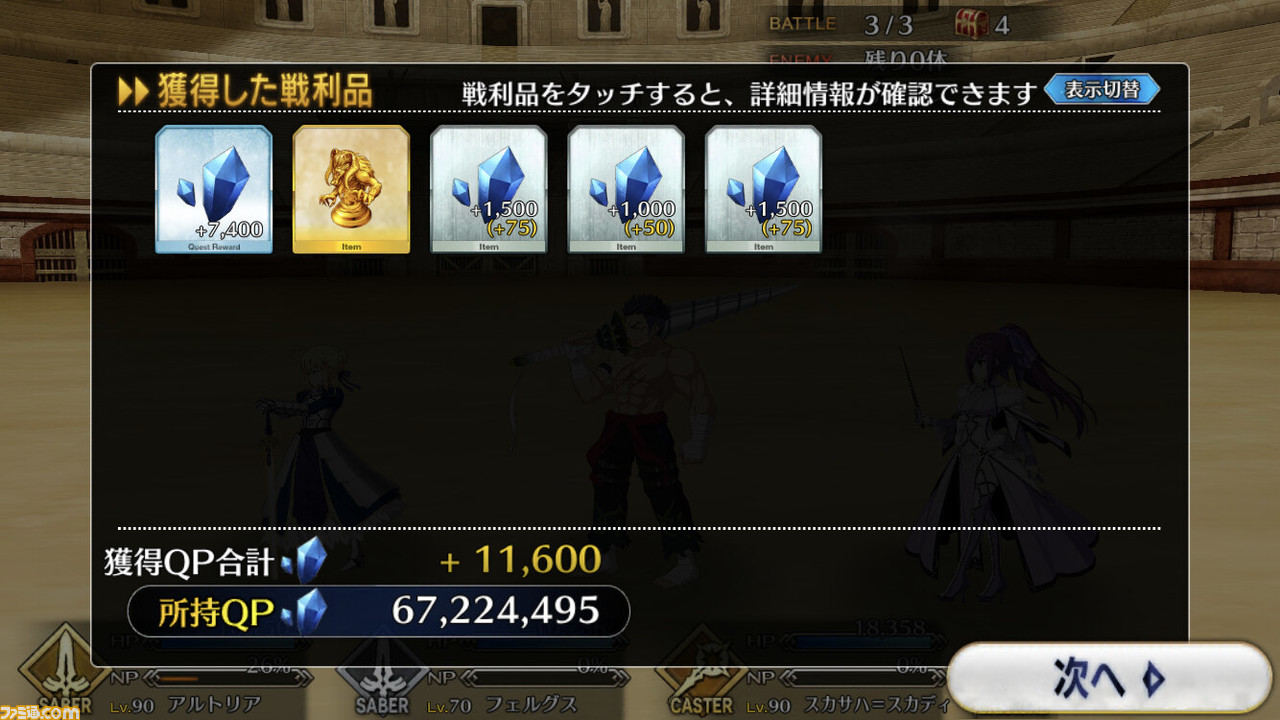 ためしにカエサルに最大解放済みの“黒の聖杯”を装備させ、2騎のスカサハ=スカディでサポートしてみた。