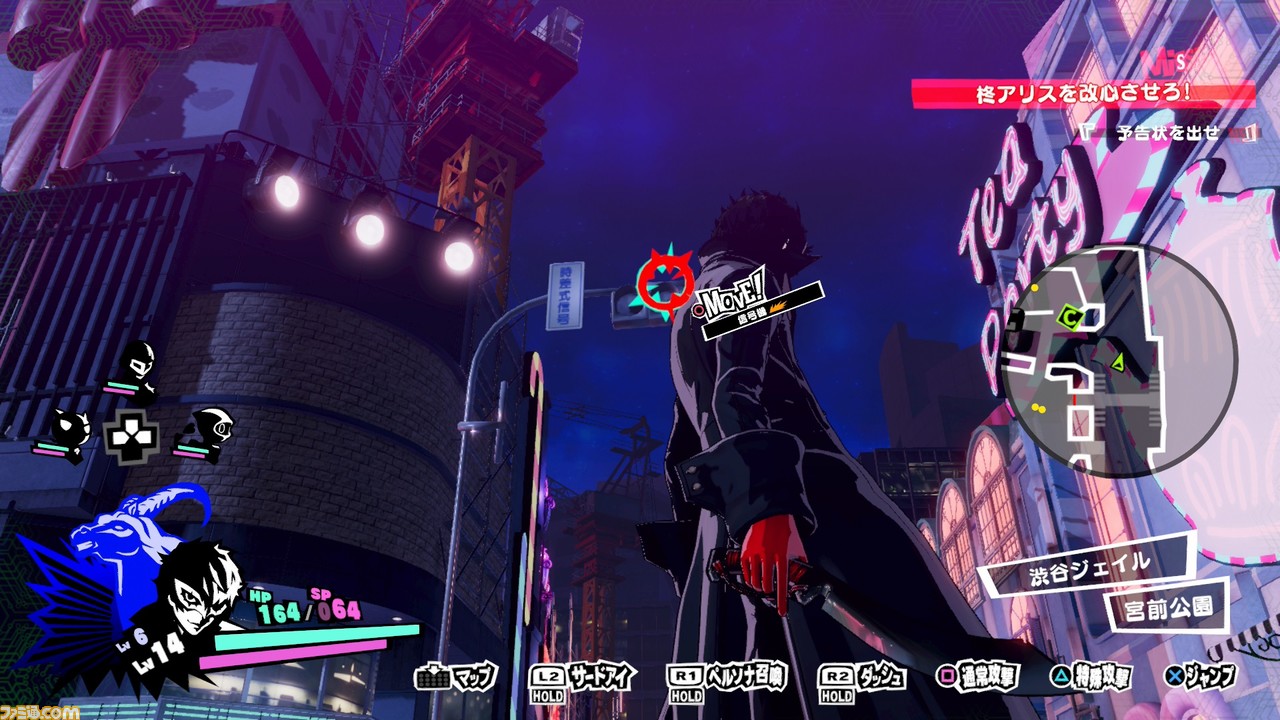 ファントムムーヴでそのオブジェに跳びつくと“カバー”状態になり、そこから△(X)ボタンを押すことで、通常移動時は別の場所に移動したり敵にスニークアタック(奇襲)を仕掛けられたり、バトル時は敵に特殊攻撃を行ったりできるなど、さまざまなアクションがくり出せる。