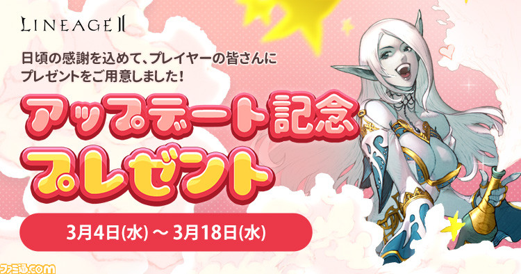 2020年3月4日、エヌシージャパンはPC用MMORPG『リネージュ2』において、3タイプのサービスそれぞれにアップデートを実施した。あわせて、アップデート記念のイベントもスタートさせている。