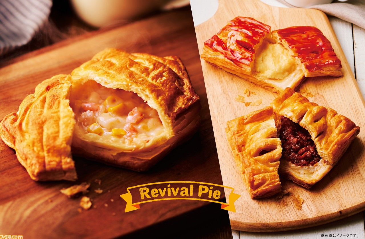 “エビグラタンパイ”はコーンを追加し食感がさらに良く、“マッシュ&ミートパイ”はミートソースの具材を大きく、“ラズベリーチーズパイ”はチーズケーキ風クリームのなめらかさがアップしているなど、過去に販売されたものよりもパワーアップされている。